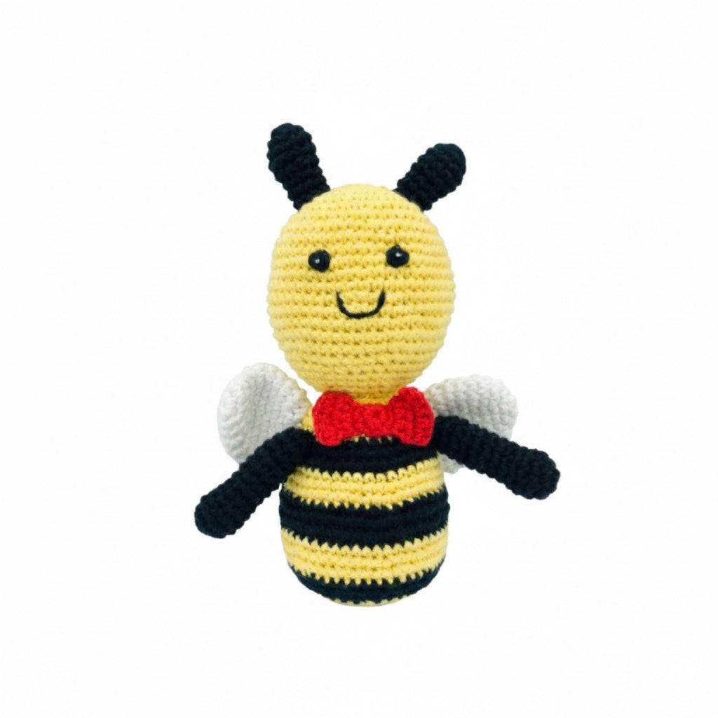 Materials: 100% organic cotton outer with 100% polyester fill. Contains a baby-safe rattle. Size: Length approx. 20cm, width approx. 8cm Care Instructions: Machine washable at 40 degrees and can be tumble dried on a low setting. Please note: Handmade with natural materials, slight variations in size, colour, and design are natural—each piece is truly one-of-a-kind, just like the hands that made it.