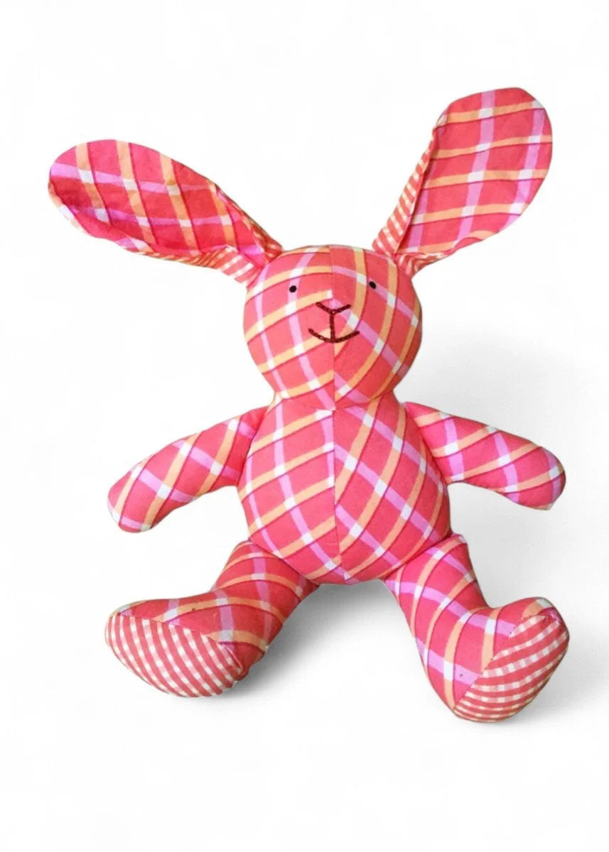 I have super-sized bunny ears! Made from soft cotton, this handcrafted Bethel Bunny is L: 10 cm and H: 24 cm. It's made with 100% cotton and filled with washable polyfill for ultimate cuddliness!